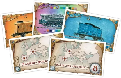 ¡Aventureros al Tren! Europa te invita a una nueva aventura en tren a lo largo y ancho de la Europa de fin de siglo, desde las escarpadas laderas de Edimburgo hasta los soleados muelles de Constantinopla, desde los polvorientos callejones de Pamplona hasta una estación azotada por el viento en Berlín. ¿Te arriesgarás a un viaje a través de los oscuros túneles de Suiza? ¿Te subirás al ferry del Mar Negro? ¿O construirás estaciones de tren en las grandes capitales de los antiguos imperios? ¡Tu siguiente movimiento puede convertirte en el mayor magnate ferroviario de Europa!