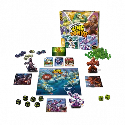 Una serie de monstruos mutantes, robots gigantes y extraños extraterrestres están peleando a la mitad de Tokyo y destruyendo la ciudad en el proceso ¿tu misión es detenerlos? ¡No! ¡En King of Tokyo tú eres una de esas gigantescas criaturas y lo que quieres es derrotar a los demás para proclamarte rey de la ciudad!