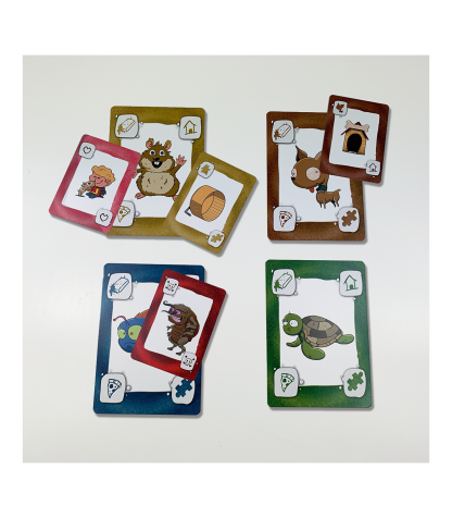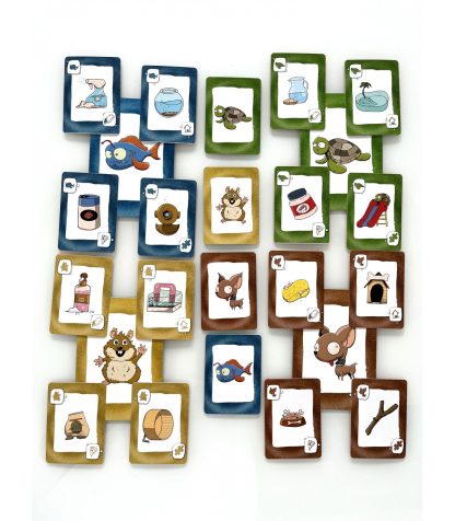 Además se incluyen 4 cartas grandes de mascota que formará el tablero central, así como reglas de juego en español e inglés.