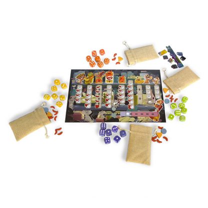 Cada jugador tiene su propio conjunto de dados de colores. En su turno, tiran sus dados y eligen colocarlos en los espacios correspondientes en el tablero. Los dados representan ratones que se trepan uno encima del otro para obtener la comida del estante superior.