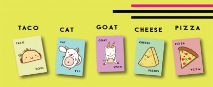 ¡Taco, cat, goat, cheese, pizza! Memoriza estas palabras y comienza la partida. Cada jugador recibirá un mazo de cartas individual del que, por turnos, sacará una carta y dirá en voz alta y en orden una de las palabras clave. Si la carta coincide con la palabra dicha, todos deben intentar robarse la carta de un manotazo. El último en reaccionar se llevará todas las cartas acumuladas. El primero en quedarse sin cartas será el ganador.